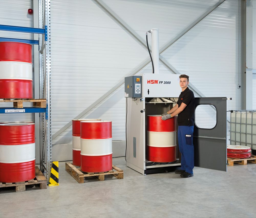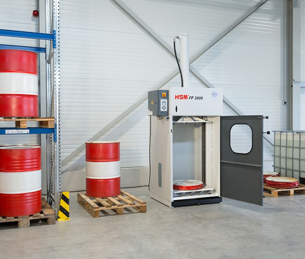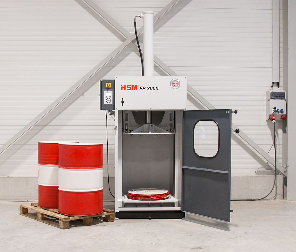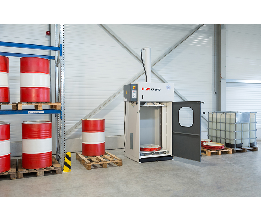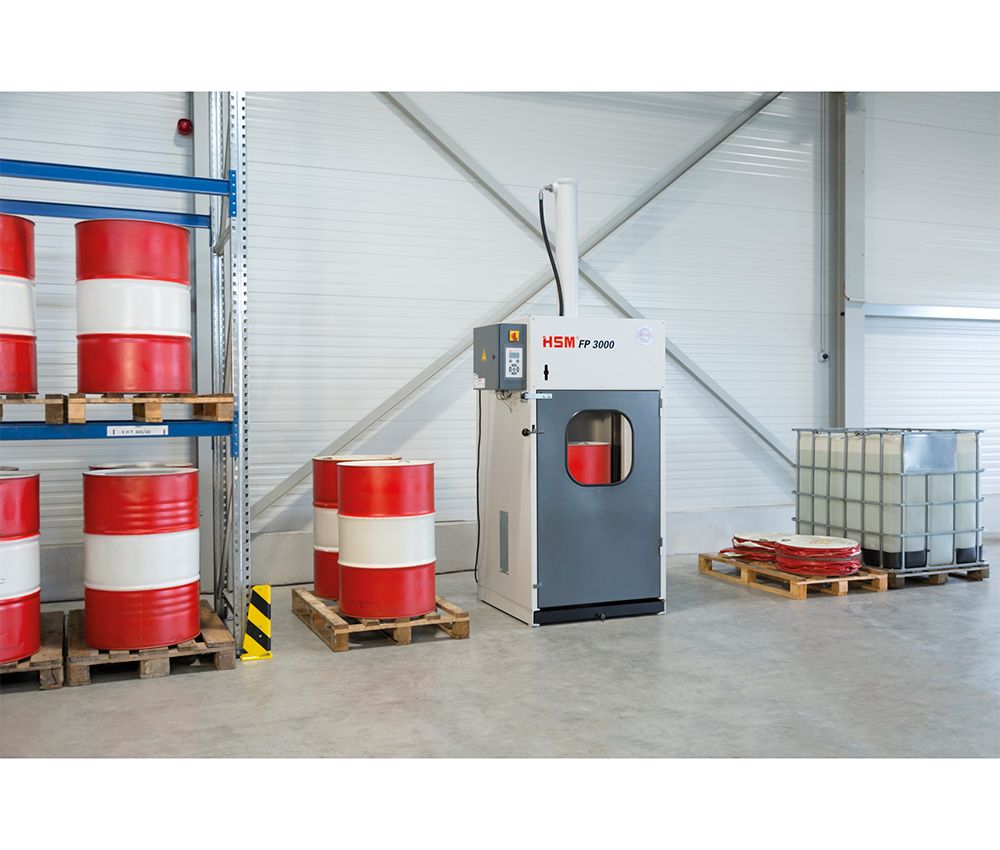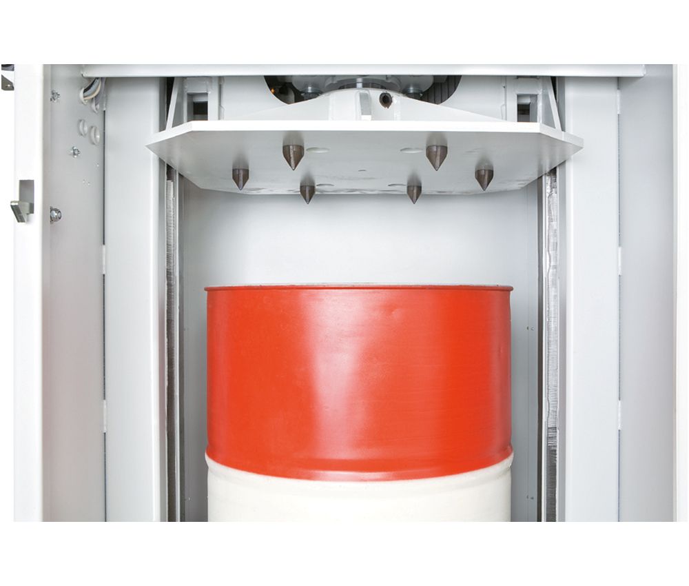 FP 3000 壓縮力 270 kN 具體壓縮力 60 N/cm² 功率 7.5 kW 電壓/頻率 400 V / 50 Hz 壓縮循環時間 33秒 吞吐量(理論) 6.25 m³/h 投料口高度 1092 mm 投料孔徑 寬x高 618 x 1092 mm 寬度 x 深度 x 高度 1158 x 997 x 2904 mm 重量 972 kg 壓縮物品 鐵桶 FP 3000 Explosion protected version(符合 EX II Gcb IIBT3 標準的防爆型號) 壓縮力 270 kN 具體壓縮力 60 N/cm² 功率 7.5 kW 電壓/頻率 400 V / 50 Hz 壓縮循環時間 33秒 吞吐量(理論) 6.25 m³/h 投料口高度 1092 mm 投料孔徑 寬x高 618 x 1092 mm 寬度 x 深度 x 高度 1168 x 960 x 2892 mm 重量 972 kg 耗材 鐵桶