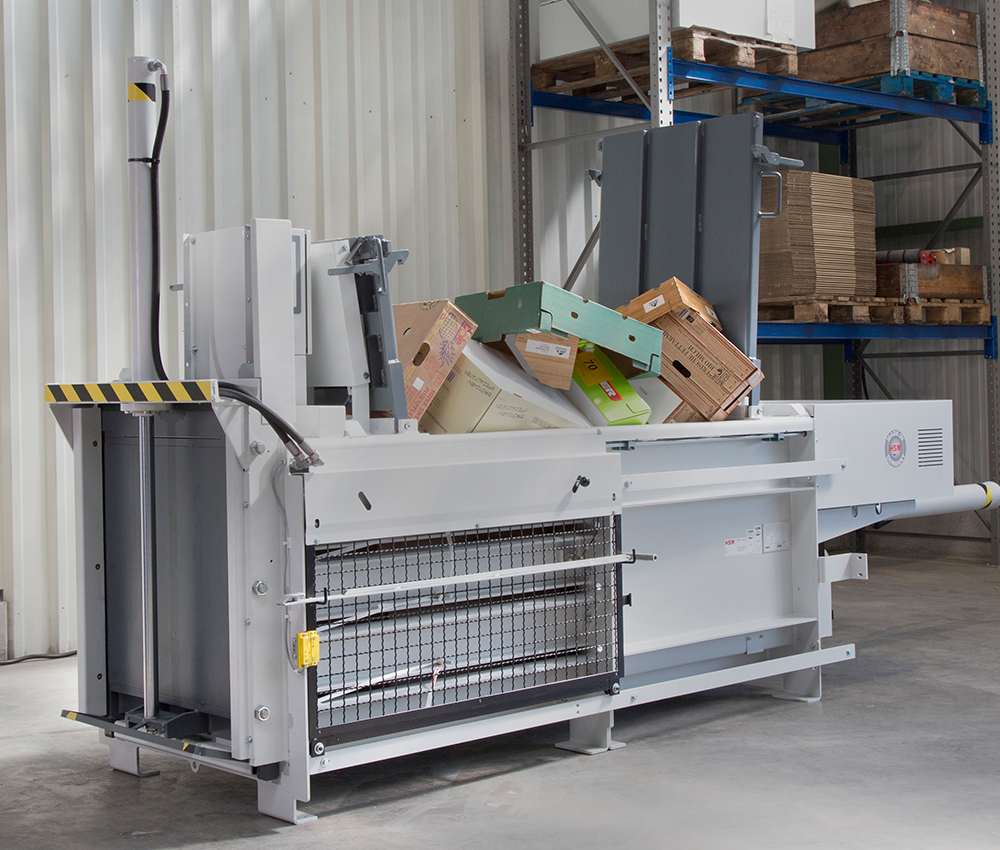 這款多功能水平固定式廢棄物壓縮打包機專為高負載而設計,可完全壓平紙屑、大型紙板紙箱、塑膠膜和類似材料,甚至是硬質油漆罐和輕金屬桶、廢鋁罐(最多 200 公升)。