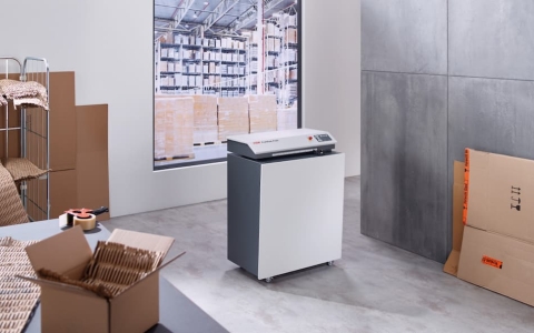 HSM ProfiPack P425 工業用紙箱碎紙機能將瓦楞紙箱回收製成免費、柔軟的保護、填充包裝材料,用於易碎產品運輸的緩衝保護或填充固定。其採用德國刀具技術,將硬紙板轉化為柔軟的網狀緩衝包裝材料,提供卓越的保護功能和多樣的包裝選擇。這種工業用紙箱碎紙機已在國外廣泛應用多年,是一種環保、節能的自製包裝材料碎紙機。