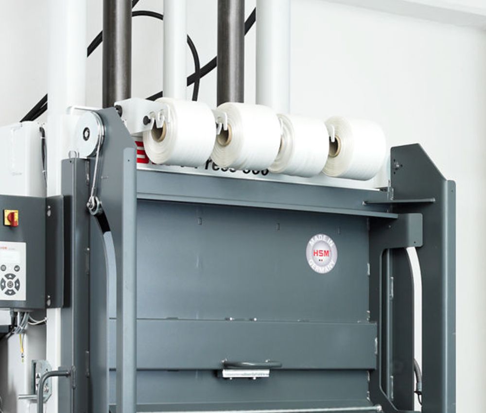 商品編號:HSM V-PRESS 860 PLUS B專為大體積紙板設計,擁有特別寬的 1500 mm 投料口 (標準型為 1195 mm)。生產的捆包密度極高,重量可達 550 kg,無需進一步壓縮即可直接販售